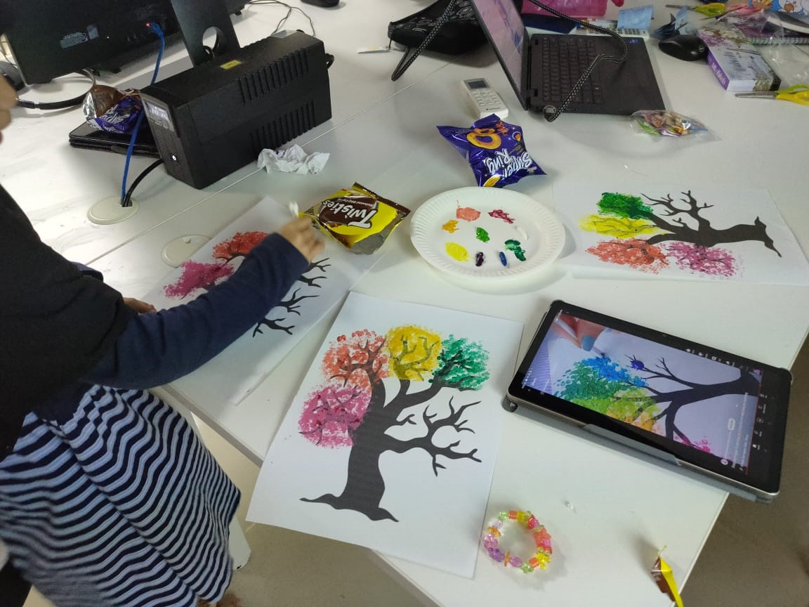 • Tujuan aktiviti ini dijalankan adalah untuk mencungkil bakat dan kreativiti peserta untuk membuat lukisan pokok warna-warni dengan menggunakan cotton bud dan watercolour.
